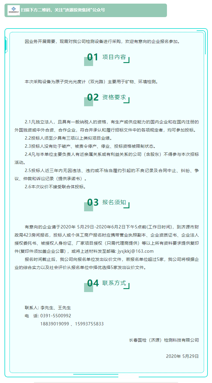 長春國檢(濟源)檢測科技有限公司采購原子熒光光度計檢測設(shè)備競爭性議價公告