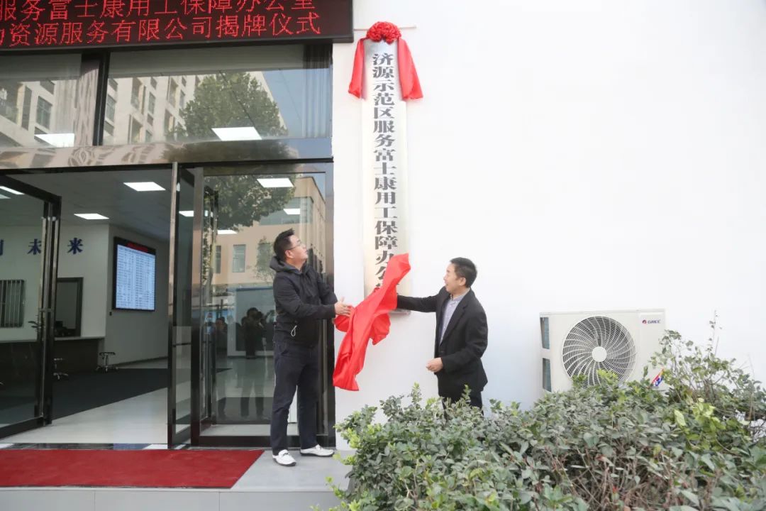 隨后,示范區(qū)管委會(huì)黨組成員、副市長趙會(huì)生與富聯(lián)科技(濟(jì)源)有限公司顏敏琦共同為濟(jì)源示范區(qū)服務(wù)富士康用工保障辦公室揭牌!