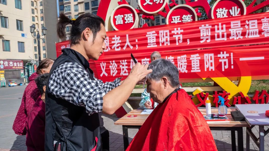 通過(guò)開(kāi)展“義診、義剪”活動(dòng),讓老人們深深的感受到我們的每一份關(guān)愛(ài)。醫(yī)務(wù)人員認(rèn)真地為每位老人檢查身體,量血壓、提出健康管理建議,并向老年人宣教“什么是常見(jiàn)病和慢性病”等相關(guān)知識(shí),叮囑他們要結(jié)合自身情況進(jìn)行適當(dāng)?shù)腻憻挘3纸】档娘嬍沉?xí)慣。